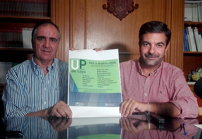 José Antonio Gómez Y Joaquín Camacho Presentando La Programación De La Universidad Popular