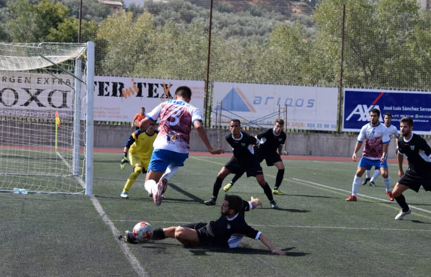 El encuentro ante el Español del Alquián fue dominado siempre por los lojeños, a pesar de que el primer gol no llegó hasta la recta final de la primera parte. Ya desde el inicio empezó a generar ocasiones el Loja, que tuvo la primera en el minuto 3 en un disparo desviado de Juanfran. Cinco minutos después Del Moral no acertó tras un envío de Quevedo.