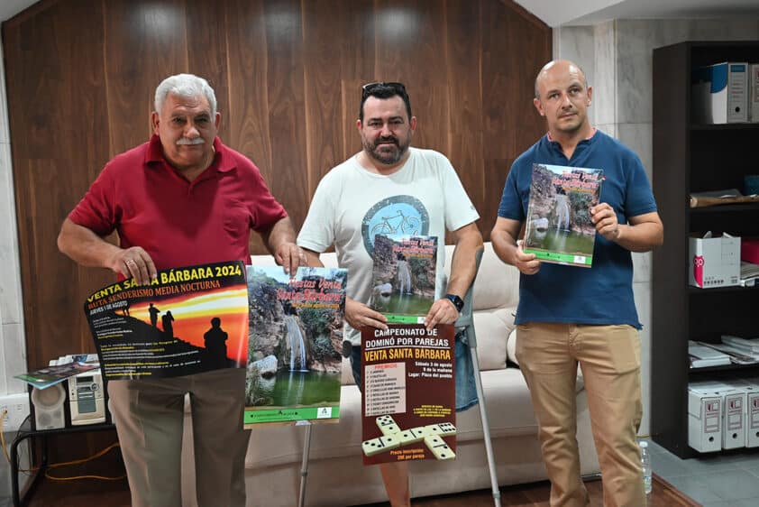 Centrándonos en las fiestas de Venta Santa Bárbara, esta semana se ha hecho la presentación de las mismas, que se desarrollarán a lo largo de cuatro días, desde el jueves 1 al domingo 4 de agosto. En dicha presentación, en la que se ha dado a conocer toda la programación, se contó con la presencia del concejal del Medio Rural, José Antonio Arco, el alcalde pedáneo, Dionisio Rama y el miembro de la comisión de las fiestas, ‘Frasco’ Joyera.
